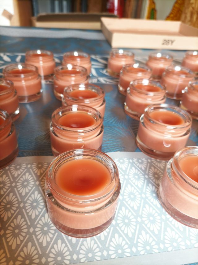 Pétales de roses de Damas, d’églantier et sommités fleuries de géranium…..Nous faisons de la recherche et développement sur ces huiles afin qu’elles soient plus odorantes