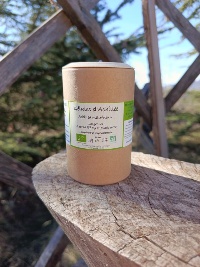 Ingrédients : Gélules d’origine végétale, *Poudre d’Achillée Millefeuille (dosée à 167 mg de plante sèche par gélule) *Produit issu de l’agriculture biologique certifié par FR-BIO-01