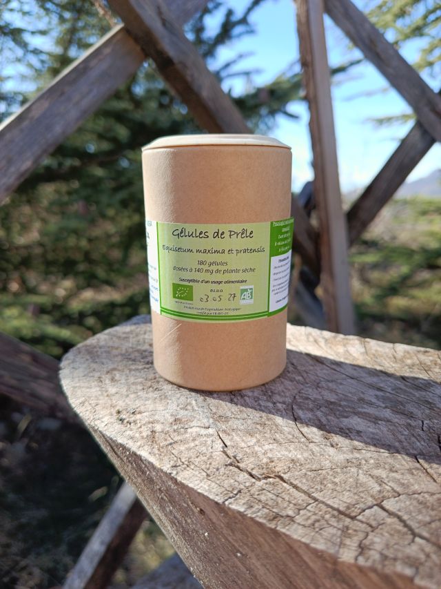 Ingrédients : Gélules d’origine végétale, Poudre de *Prêle (dosée à 140 mg de plante sèche par gélule) *Produit issu de l’agriculture biologique certifié par FR-BIO-01