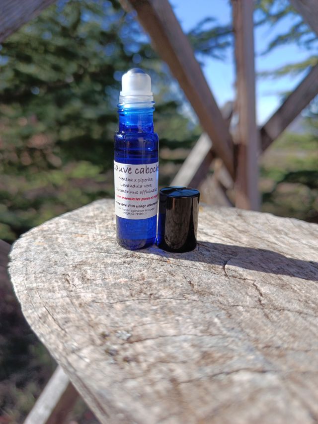Ingrédients: HE de *Menthe poivrée, *Lavande fine sauvage, *Romarin pyramidal